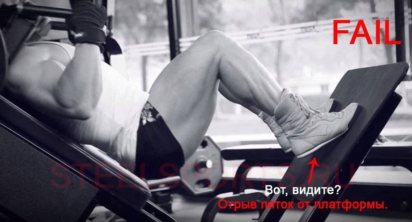 №1. Часто люди отрывают пятки от платформы тренажера (это недопустимо), см. ниже фото: