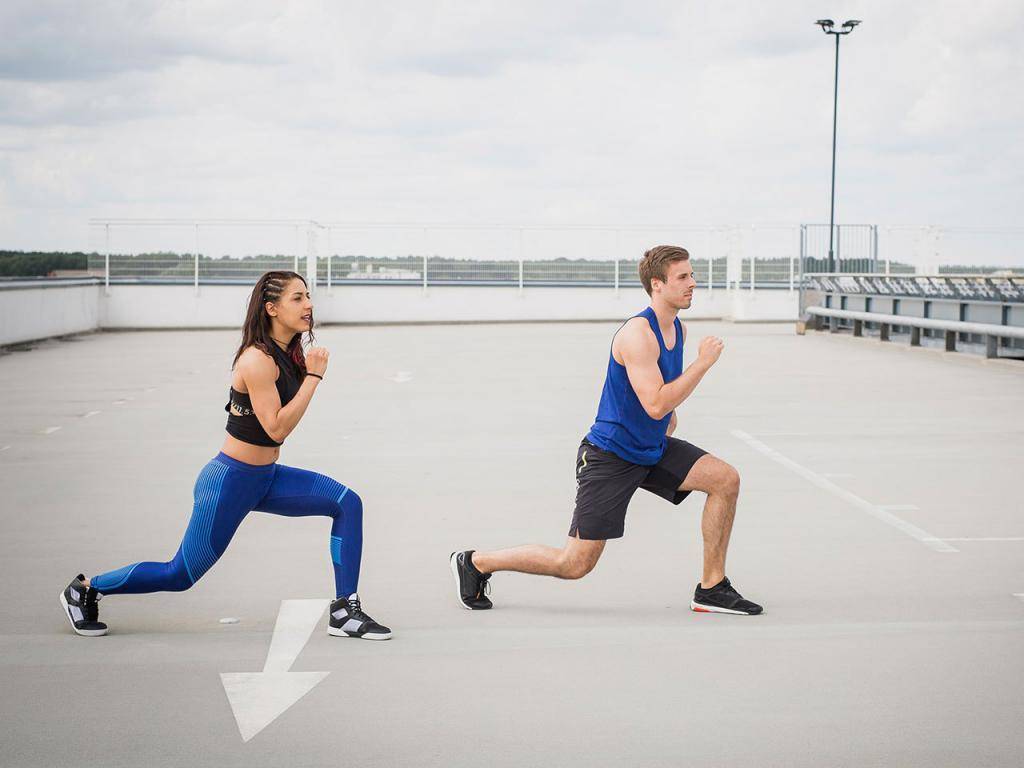 - Выпады в прыжке. Это упражнение сочетает силовую и кардионагузку. Сделайте выпад вперед. Возвращаясь в исходное положение, подпрыгните вверх, поменяв рабочую ногу. После мягко опуститесь в присед.