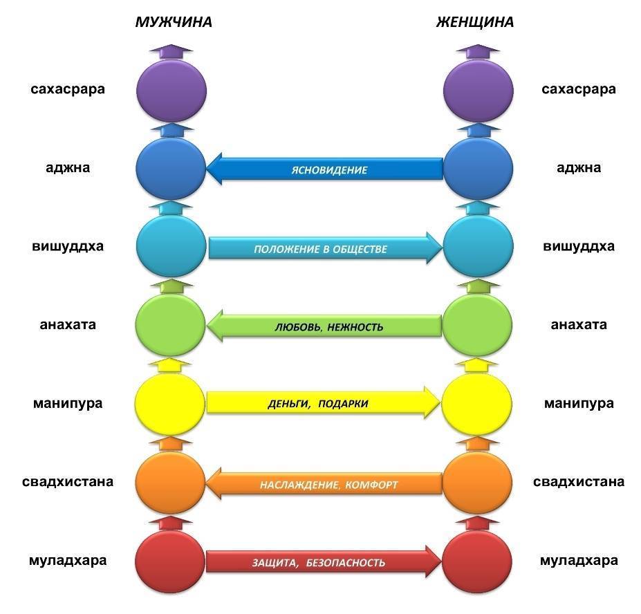 схема взаимодействия мужчины и женщины на уровне их чакр