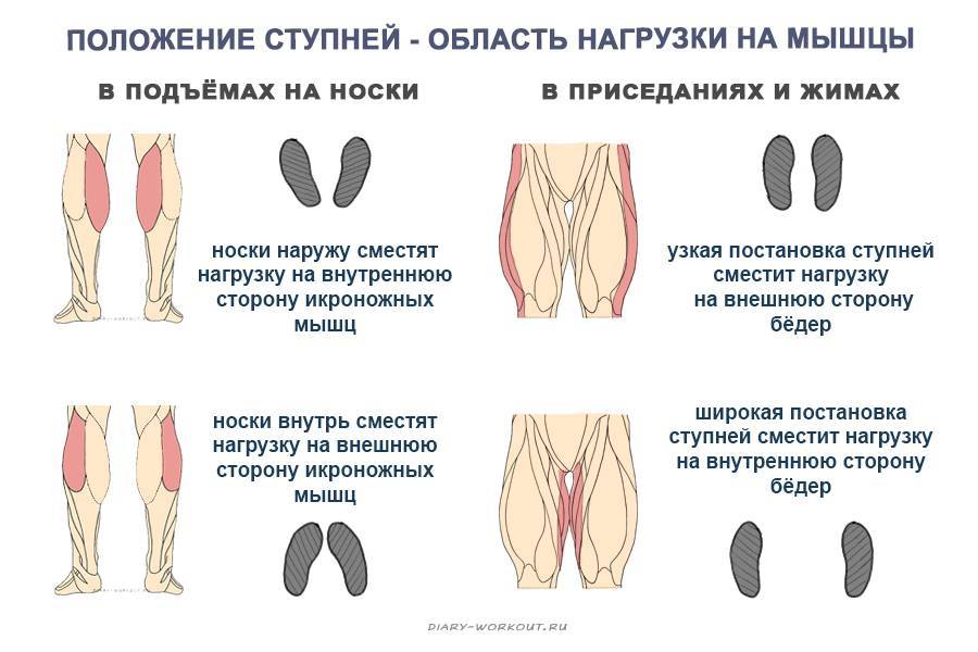 Но вы должны знать и минусы этого, приподнимая пятки, нагрузка смещается на низ квадрицепса, при этом колени немного выдвигаются вперёд и увеличивается нагрузка на связки и хрящи колен.