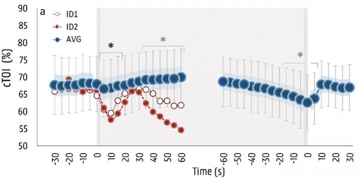 Оксигенация мозга тоже проводилась при помощи спектроскопии в ближнем инфракрасном диапазоне. Результаты оказались очень интересными.