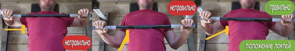 Самое важное, что каждый спортсмен должен знать – положение локтевых суставов. Для очень многих атлетов характерна одна ошибка – они слишком сильно разводят локти по сторонам