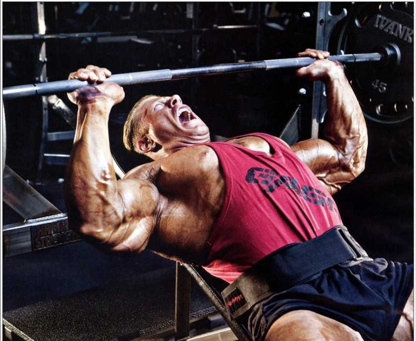 Вы должны напрягаться не в процессе жима, а ещё до его начала. Вдавите в пол стопы, напрягите икроножные мышцы, квадрицепсы, ягодицы, мышцы пресса и широчайшие мышцы спины.