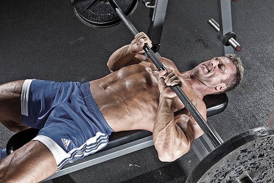 - Снимите штангу с упоров и выведите на уровень солнечного сплетения – это начальное положение, с которого начинается жим.